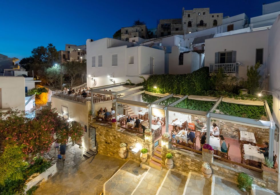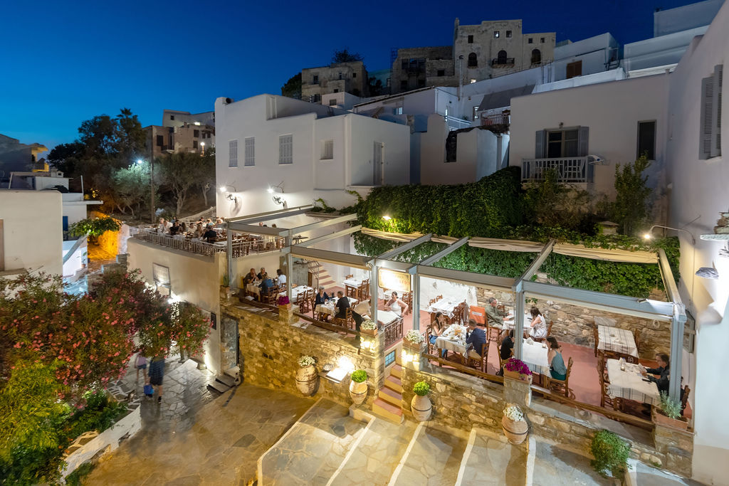 In the heart of Naxos Town (Chora), at the entrance of the historic Old Market, Typografio Restaurant stands as one of the island's most atmospheric spots. Just a few meters from the waterfront and the main road, there where seven picturesque alleys meet, a space that blends the aura of the Cyclades with history awaits you.
